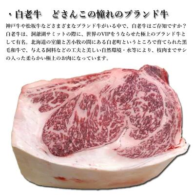 深いコクとまろやかな味わいは絶品でので是非『白老牛』をご賞味ください。
