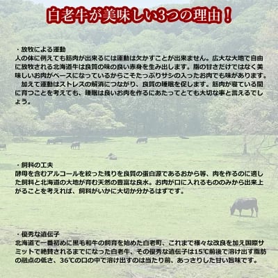 深いコクとまろやかな味わいは絶品でので是非『白老牛』をご賞味ください。